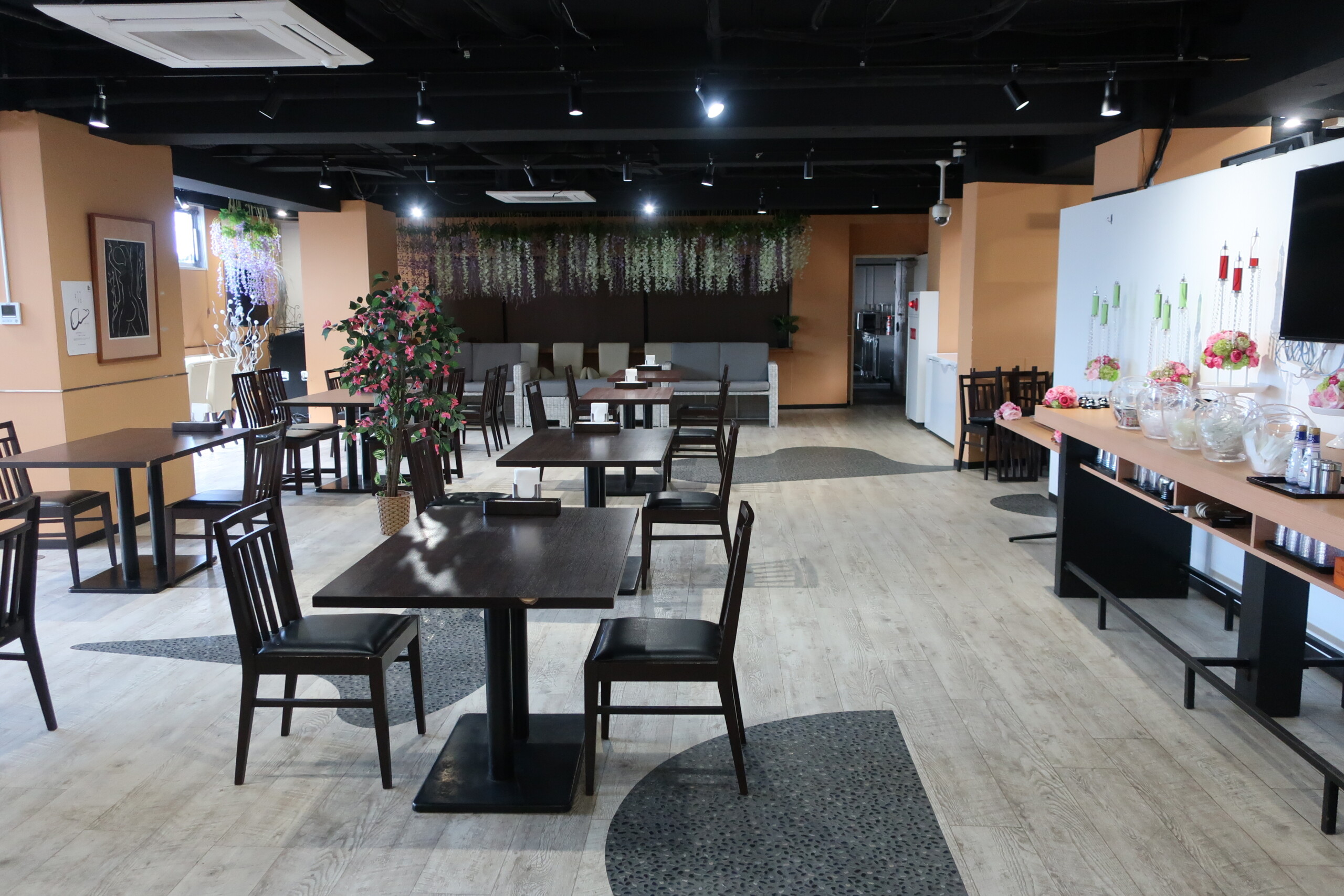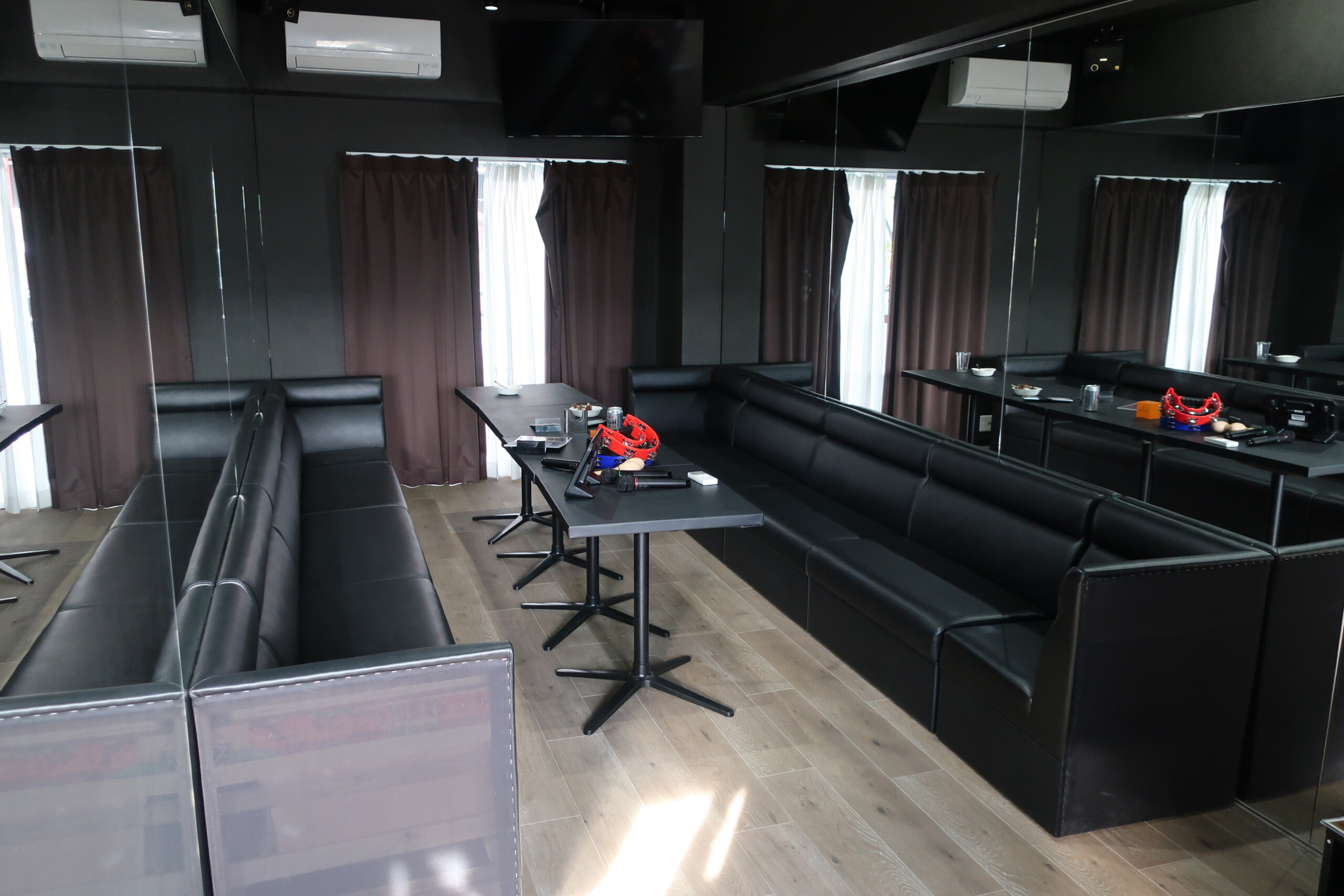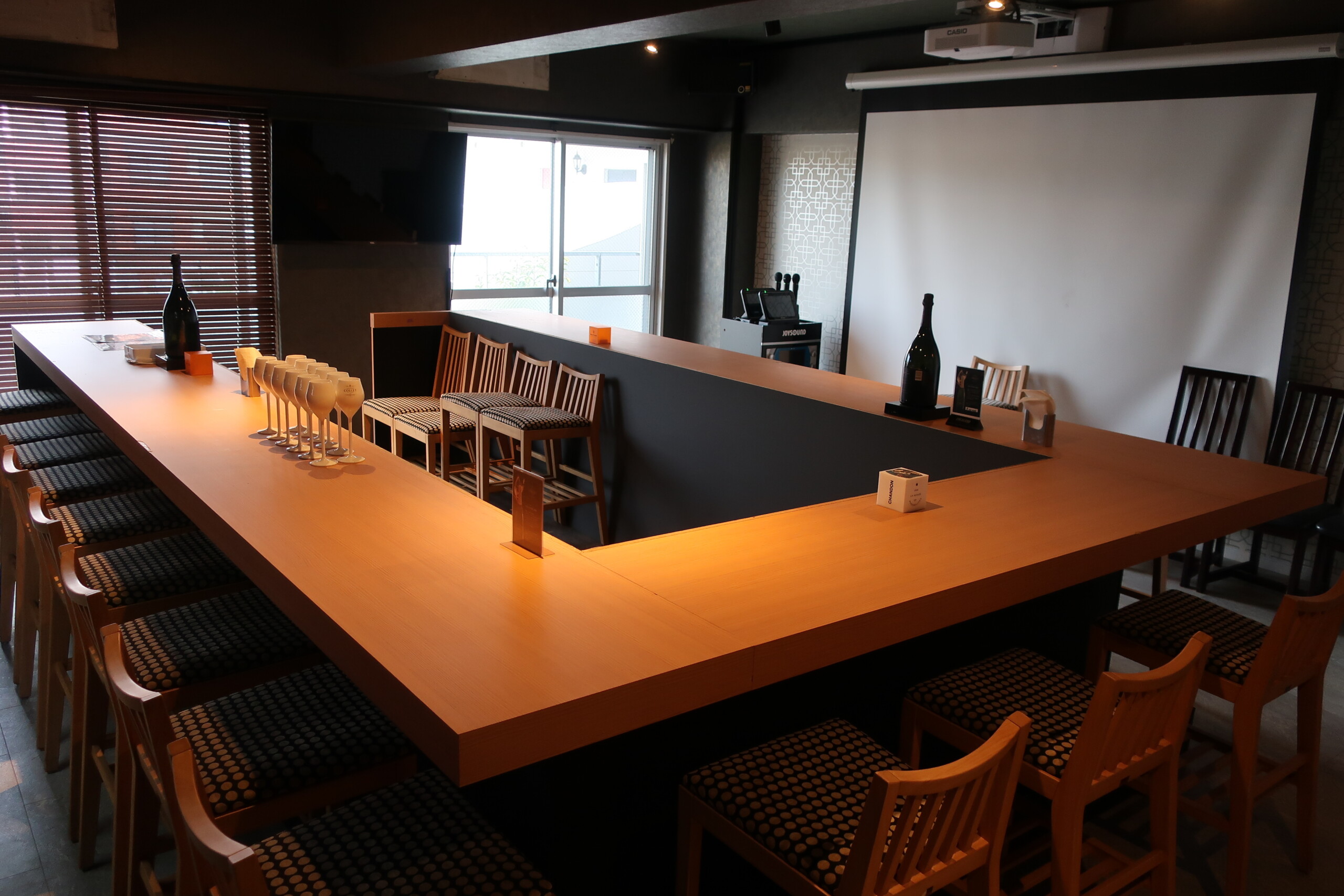 另有付費使用的卡拉OK室,一間是中型包廂,另一間則是大型包廂,螢幕用投影機,座位區則是夜店吧檯式座位。