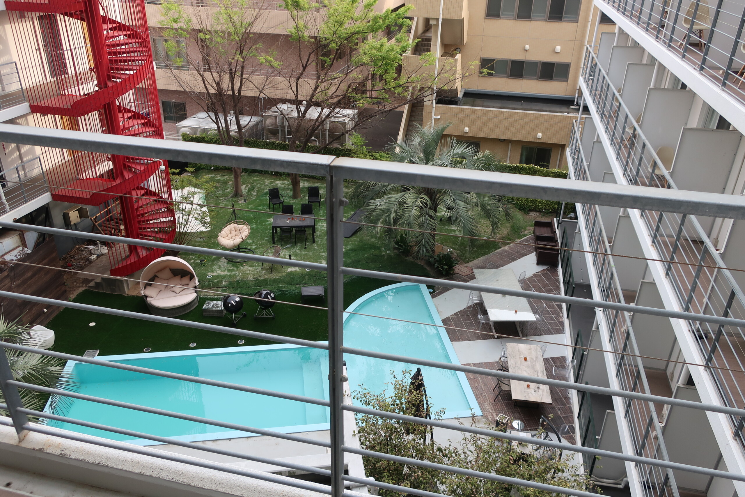 客房有約七種不同類型,包括主要的雙人房(Double Room 87間 & Twin Room 10間)和套房(Suite Room 12間),房間都維持得非常明亮整潔,房間有小陽台,俯瞰就是中庭花園和泳池。如果是家族旅行,可選擇相當寬敞的套房,房內設置了小廚房,備有冰箱、微波爐和IH電爐,如果想中長期留宿的話,每天外食可能會膩,所以可在市場買想吃的新鮮食材,回飯店自炊,煮自己想吃的東西。