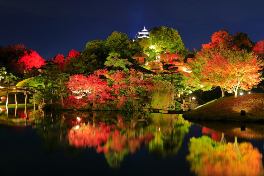 山陽山陰的紅葉勝地,不能不提到作為「日本三大名園」之一的「岡山後樂園」,到了秋天會舉辦夜間點燈活動,來到此地賞夜櫻、賞庭園,真的是一大享受!