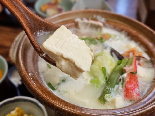 午餐來到了嬉野溫泉鎮上,一間知名的湯豆腐名店「宗庵よこ長」(宗庵YOKO長)。多年前來過嬉野溫泉以後,我對於此地印象最深刻的,除了優質的溫泉泉質之外,就是美味的湯豆腐。覺得好吃到什麼程度呢?就是回到東京以後,還特地去佐賀物產館尋找有沒有買嬉野溫泉豆漿或豆腐!很開心事隔多年,終於又在當地重逢了嬉野湯豆腐。