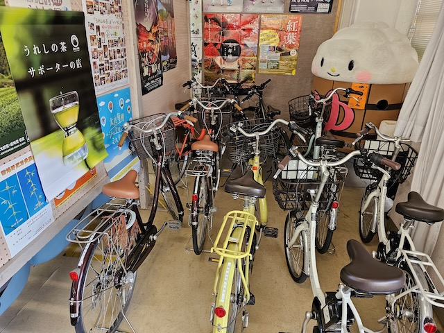喜歡「嬉野」(URESHINO)這個地名。「嬉」字的發音「URESHI」在日文裡是快樂的意思,彷彿隱喻著來到嬉野溫泉,就是充滿愉悅的旅程。散步起點的「嬉野巴士中心」同時也是嬉野觀光協會(觀光指南所),在這裡可以獲得當地的旅遊資訊,同時還有提供租借腳踏車的服務。倘若不想走太多路,那麼以單車代步也是挺好的選擇。