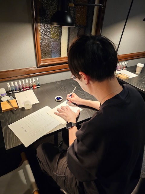 「色寫經室」是一項結合藝術與禪意的體驗活動,我特別參與體驗這項活動,在靜謐空間中,使用特殊的玻璃墨水筆,臨摹經文或文學作品,當然,也可以寫自己想寫的文字。寫字是需要專心的,在書寫的過程裡,不知不覺感受到專注與平靜的力量。忙碌的都會人,倘若靜不下來,這或許是一個很好的磨練機會,培養耐性和專心度。