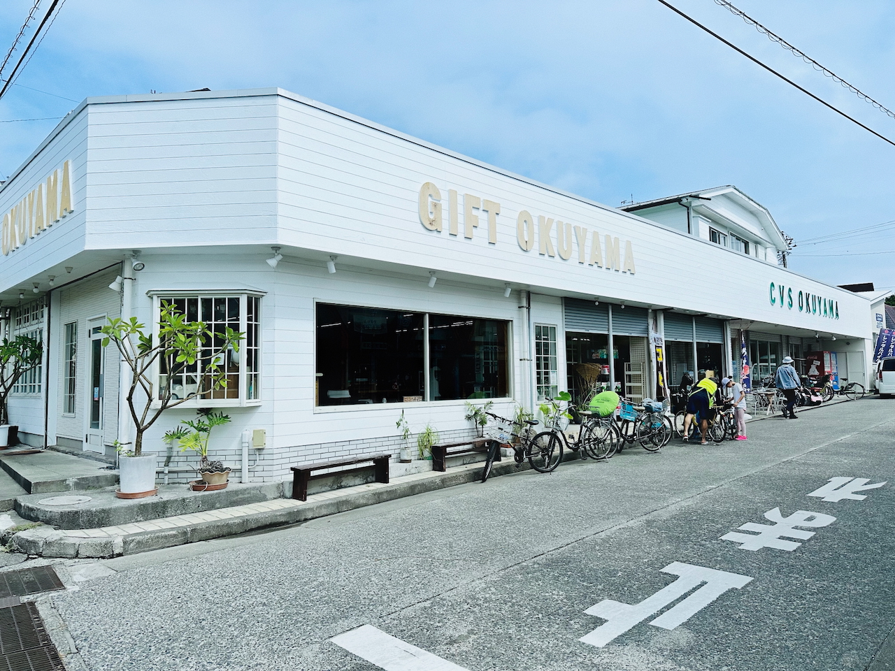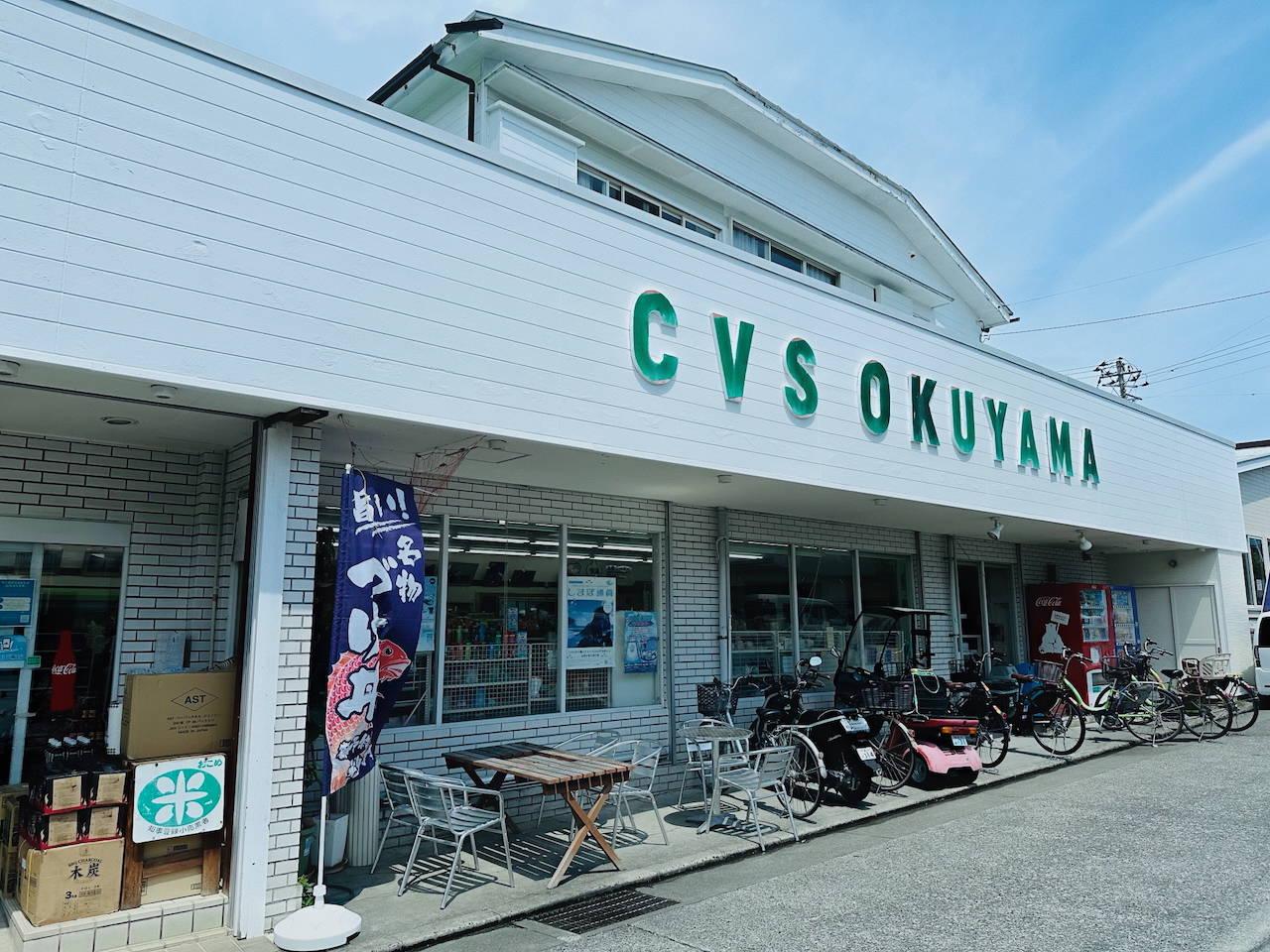 在 MANBOW 隔壁的「OKUYAMA」是式根島中心部最大的一間雜貨店。基本上日常所需,從用品到食物都能在這裡買到,包括麵包、生鮮蔬菜和便當。同樣也是多角化經營,這裡還有伴手禮店及一間咖啡館。