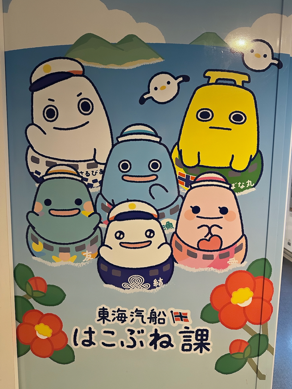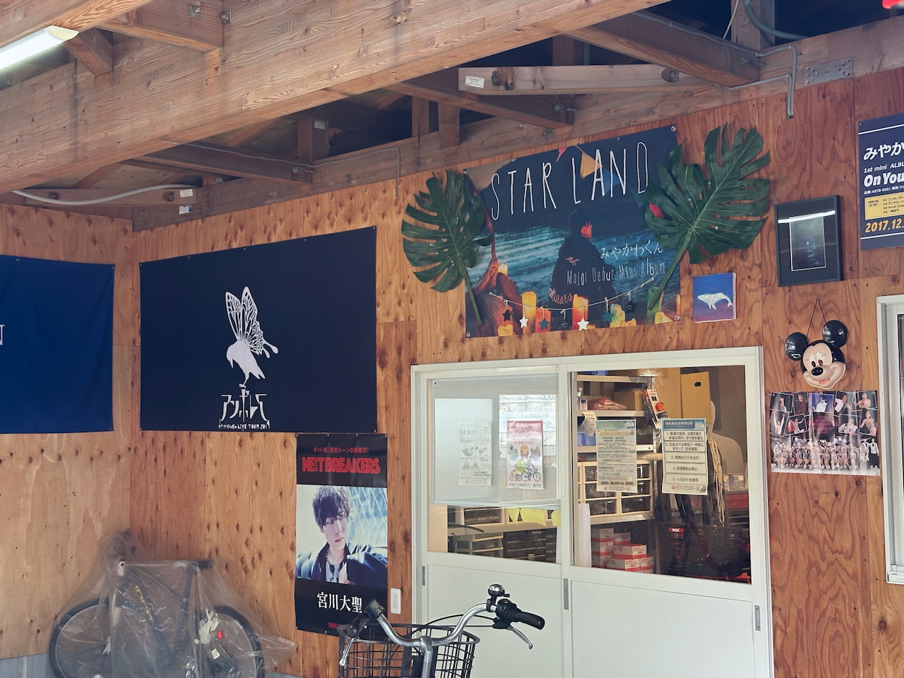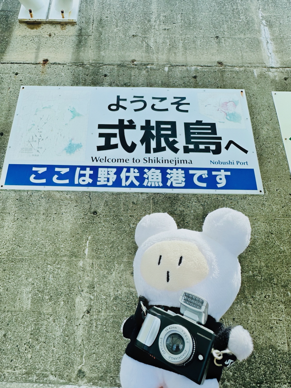 我之所以對式根島漸漸有印象,是來自於同行的旅伴,以及日本歌手宮川大聖——這裡是他出生的故鄉。六年前,喜歡宮川大聖的旅伴已經先踏上過這片土地,曾和我分享島上的海色與溫泉。對粉絲來說,這裡不只是地圖上的一個地名,更是一個與音樂連結的原點。後來我也聽起宮川大聖的歌、去看他的演唱會,帶著他的周邊娃娃走訪各個角落。這一次,終於輪到我跟隨旅伴的腳步前往,帶著娃返鄉,也算是完成一場遲來的朝聖之旅。