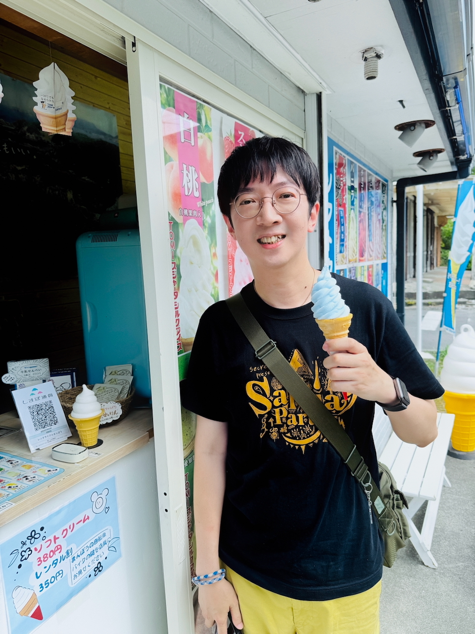 如果你在夏日來到式根島,要是跟我一樣夠幸運的話,那麼為你親手製作霜淇淋的人,極可能就是 MANBOW 老闆的兒子,也就是我和旅伴喜歡的日本歌手宮川大聖。