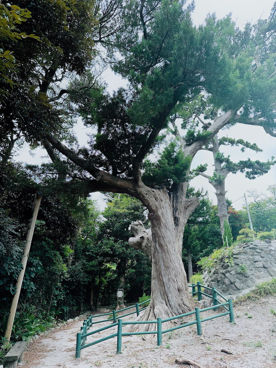 島中央的「東要寺」是自古以來守護著式根島居民的精神信仰。寺院不大,卻有著濃厚的寧靜氛圍,香火長年不斷。最特別的,是院內一株被指定為東京都天然紀念物的「梛木」(イヌマキ)已有數百年樹齡,樹枝錯綜複雜,充滿力道,被視為島上的守護樹。梛木在日本文化裡象徵祈願與庇佑,葉片堅韌不易破裂,被視為堅強與長壽的象徵。東要寺的這株古木,不僅是自然遺產,更是島民情感的寄託,與宗教信仰緊緊相連。