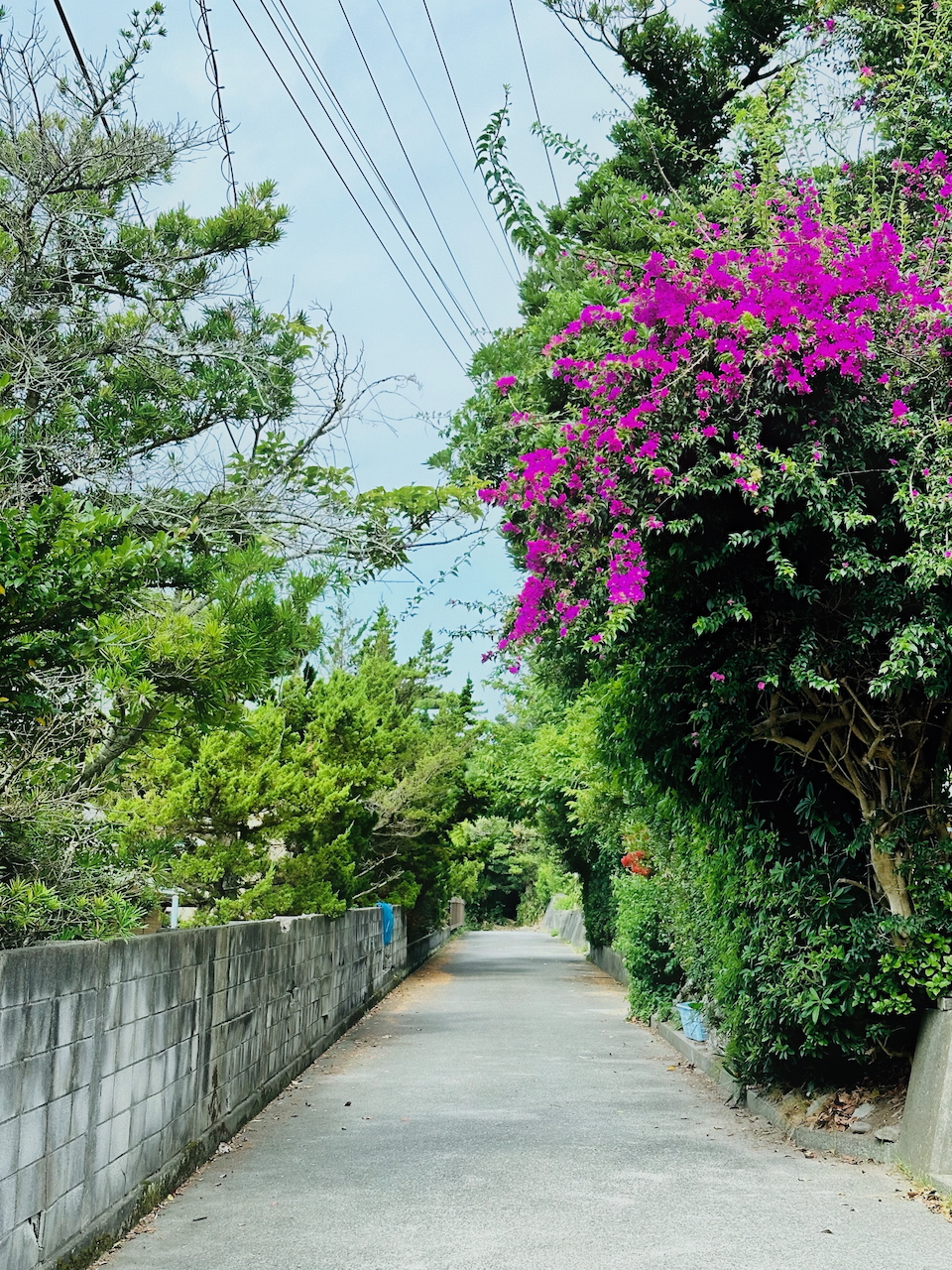 沒有高樓大廈阻擋視線,放眼望去,是讓都市旅人瞬間放鬆的遼闊感。遠處,是碧海藍天交織的明亮色彩;近處,則是一幢幢可愛的平房與巷弄間盛放的花卉。島邊的小島的夏日風情,處處都是能收進寫真書的優美畫面。