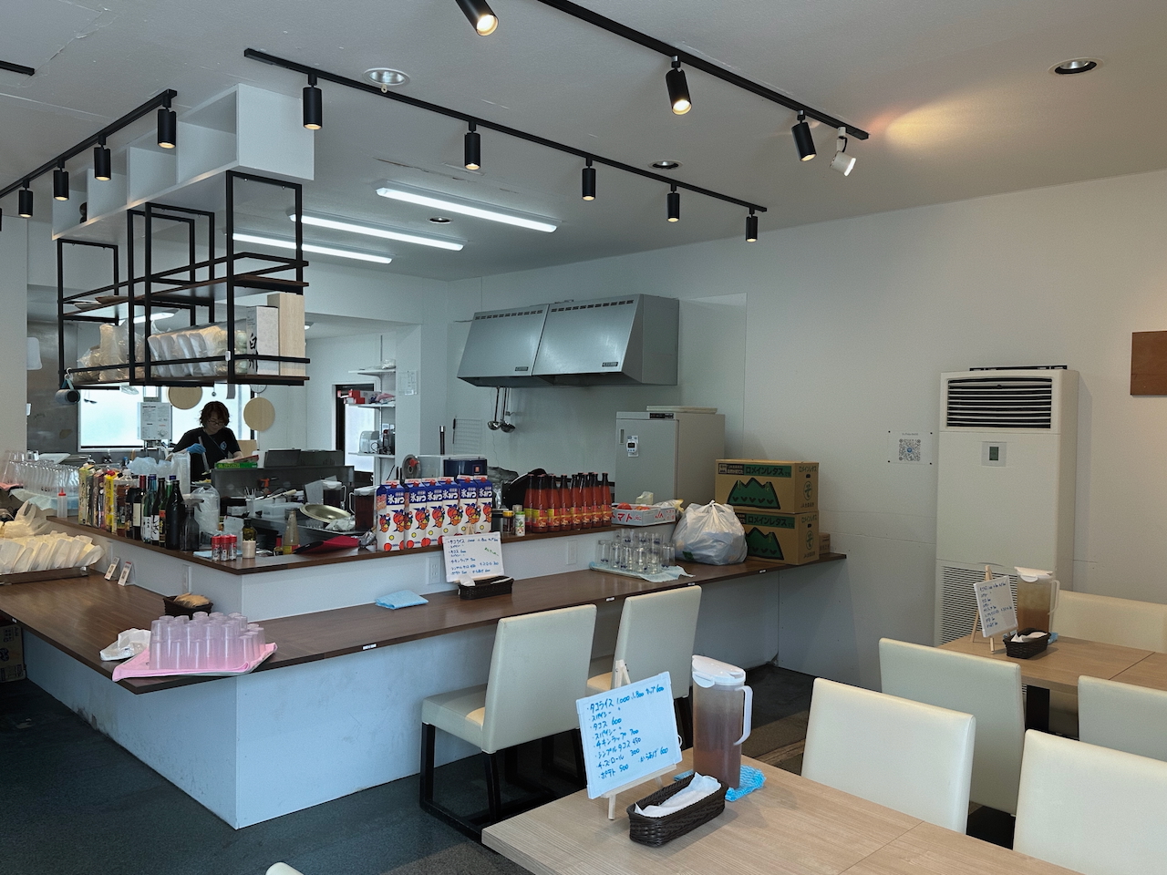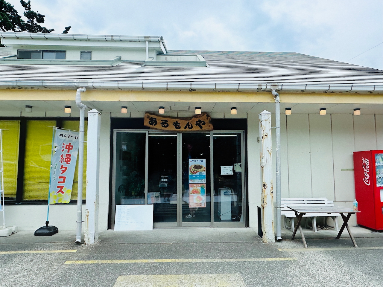 騎著自行車開始環遊式根島,途中,停留休息的地方是一間叫做「式根島食堂arumonya」的餐廳。這裡本來是一間賣海鮮為主的日本料理店,如今原有的餐廳已經暫停營業,正尋覓有意開店的店長接手。食堂正在等待有緣人出現的這段期間,變成了出租空間,提供餐館出差,在此開設臨時店。我們去的時候,恰好是島外的人來開設為期僅有三天的快閃店,也算是一期一會。期待下回再訪時,食堂有嶄新的一面。