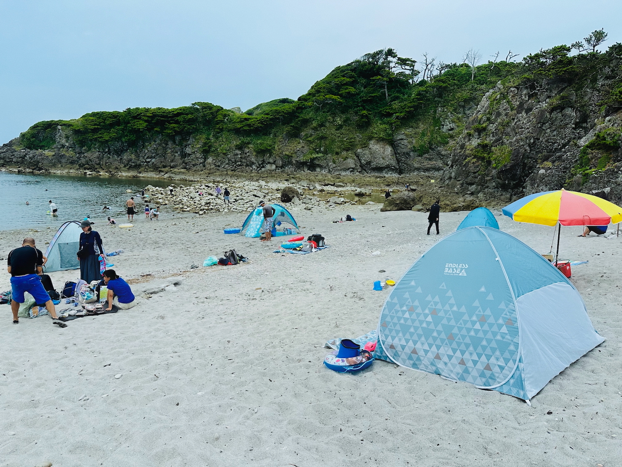 許多遠道而來的旅人,正是為了這片沙灘而專程造訪式根島。而我,早在多年前就曾從旅伴的相簿裡見過它的身影,也在宮川大聖的寫真書裡翻到過相關畫面。如今,終於親自站上這片海灣,讓記憶裡的影像成為真實。