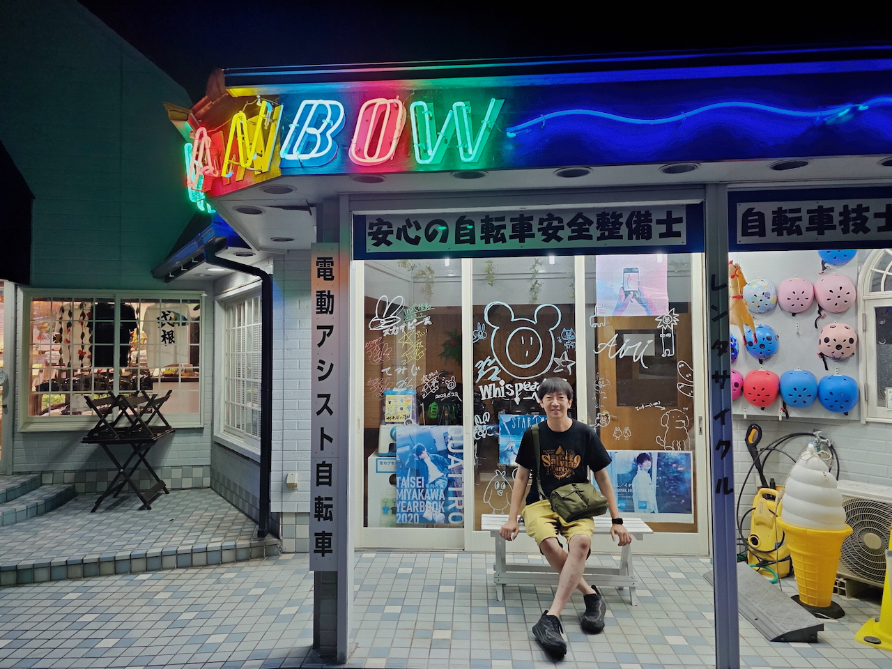 在 MANBOW 遇見歌手宮川大聖時,他笑著對我們說:「如果想要的話,晚上店家招牌可以為你們點燈喔!」