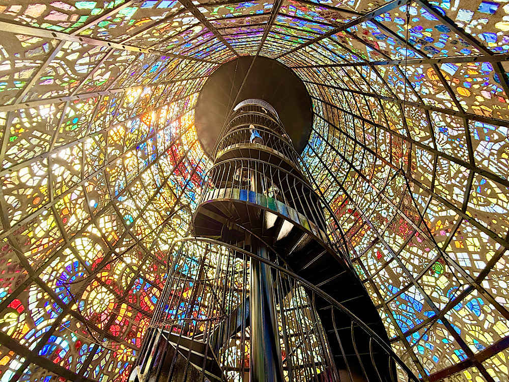 整座園區本身也是藝術品,可以在開放空間中一邊散步一邊欣賞雕塑,還有可以進入體驗的玻璃塔與兒童互動空間,非常適合全家大小一起來走走。