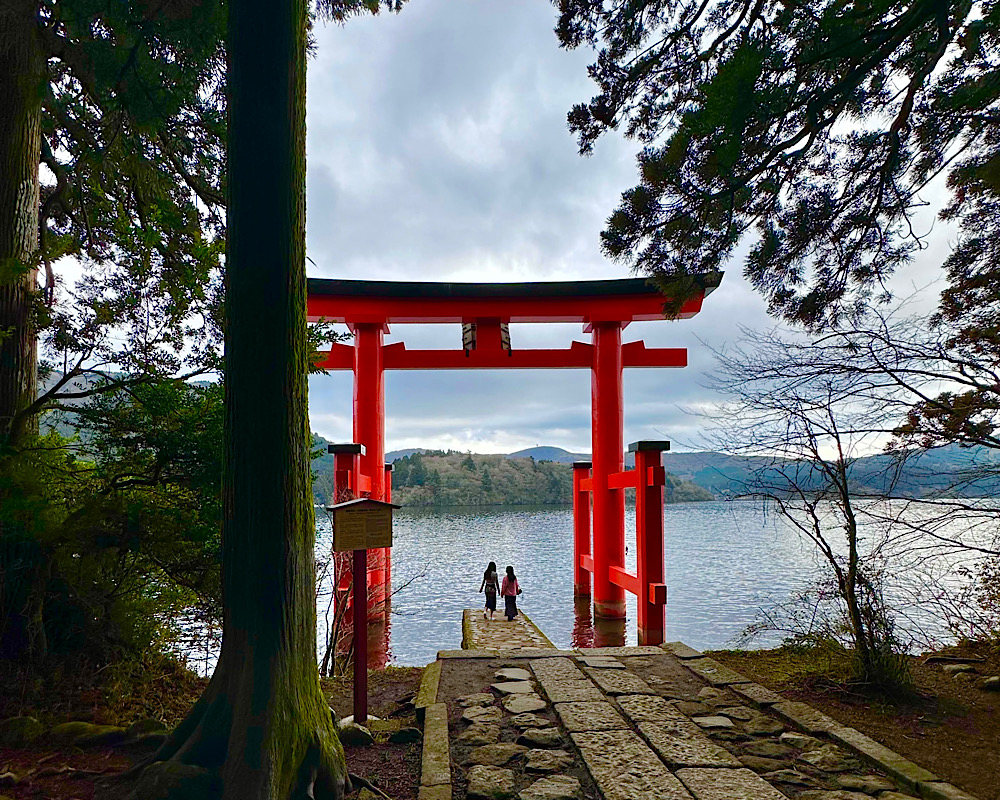箱根神社位於蘆之湖畔,是當地非常有歷史且香火鼎盛的古老神社,已有超過 1200 年歷史。除了莊嚴的本殿與氣氛寧靜的杉木參道,最著名的莫過於湖面上的「平和之鳥居」。鳥居建在湖中,搭配背後的山景與湖水倒影,形成一幅絕美的風景畫,也是拍照打卡的超人氣景點。