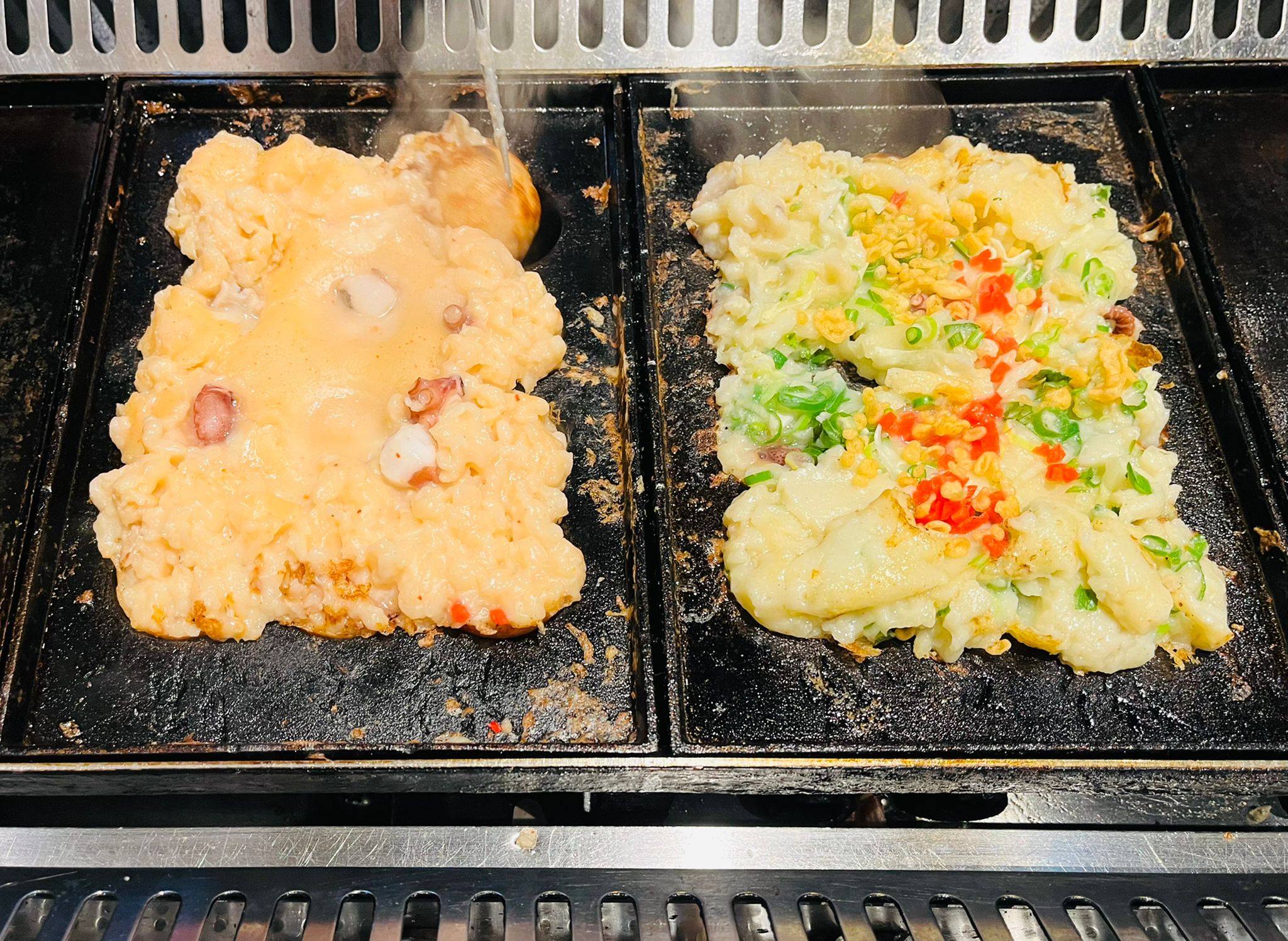 在享用方式上也大不相同:章魚燒通常會淋上特製醬汁、美乃滋,再撒上柴魚片和海苔粉;明石燒則是搭配清淡的柴魚或昆布高湯,讓人能更清楚地品嚐到食材本身的鮮美。