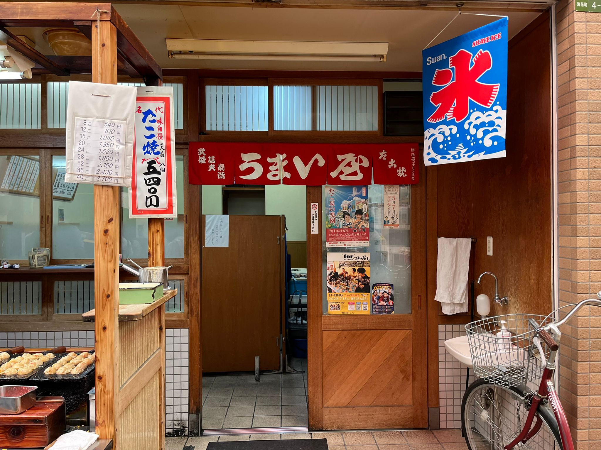 店面採用攤販形式,設有小型吧台,顧客可以透過玻璃觀看店員不斷製作章魚燒的過程。這裡有「原味章魚燒」和「蔥花美乃滋章魚燒」這兩種章魚燒,「原味章魚燒」將醬料和美乃滋淋在蓬鬆飽滿的章魚燒上,就是最經典的吃法。