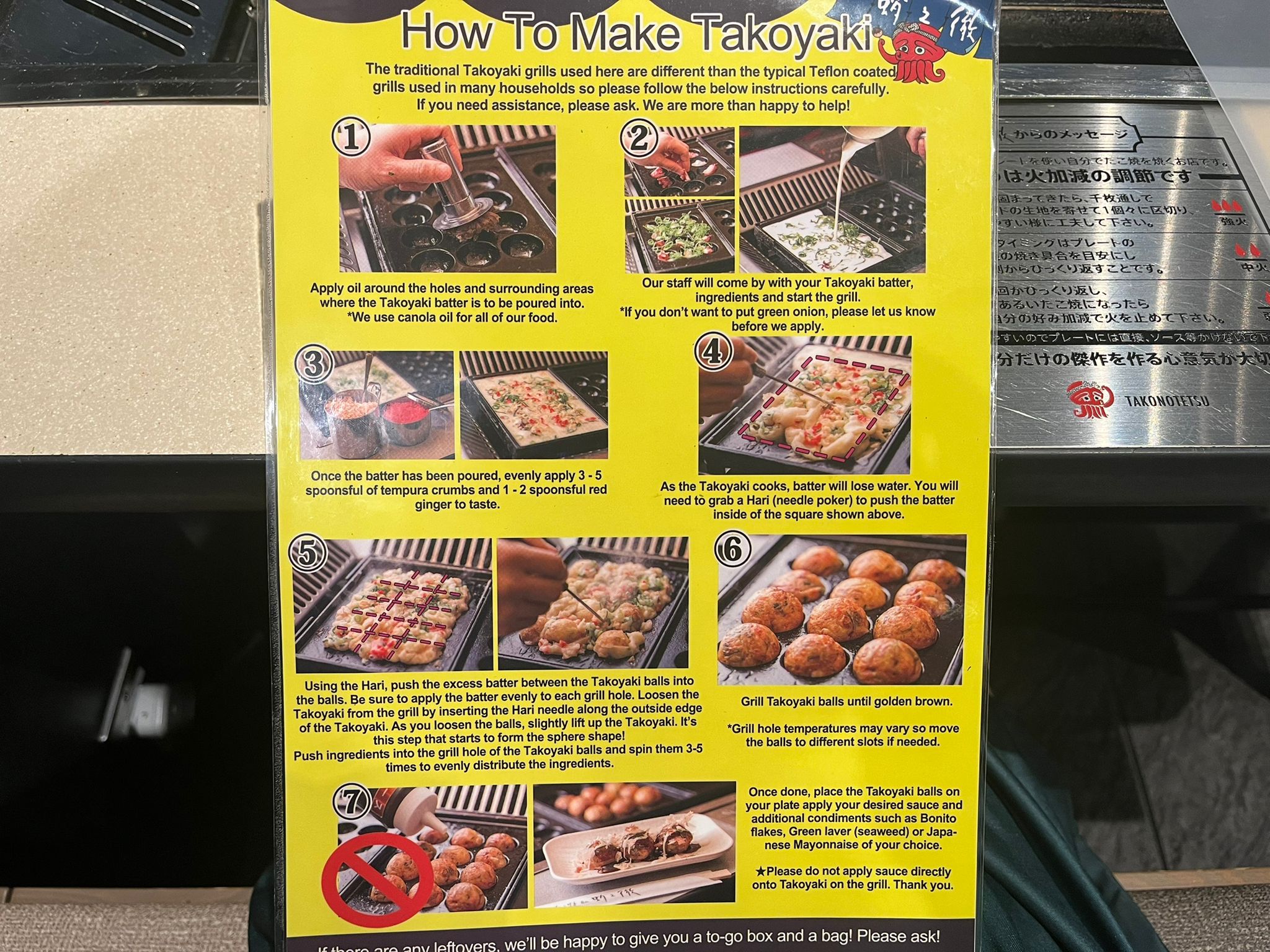 店內提供日文和英文的章魚燒製作指南,若遇到不明白的地方,可以向店員詢問協助。