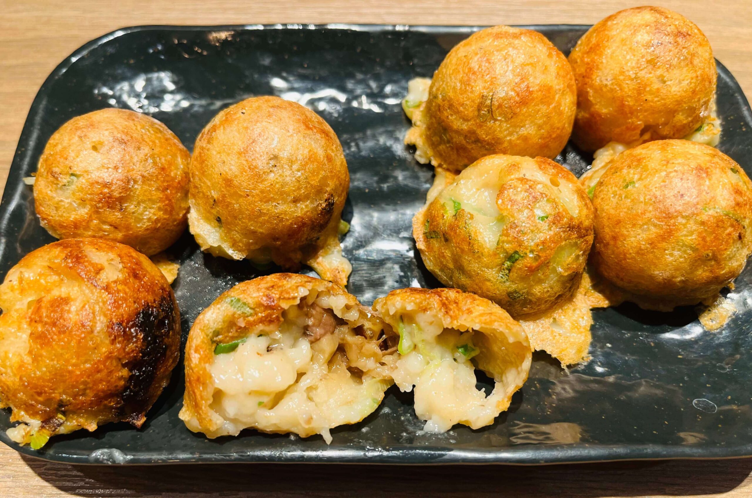 這裡的章魚燒也相當講究,遵循大阪傳統風格,外皮薄透不會過分酥脆,讓內餡的章魚鮮味得以充分展現。若想嘗試新意,店內還提供最受女性和孩童歡迎的章魚燒焗烤。每道料理都是現點現做,雖然需要稍等,但能確保品嚐到最佳風味。