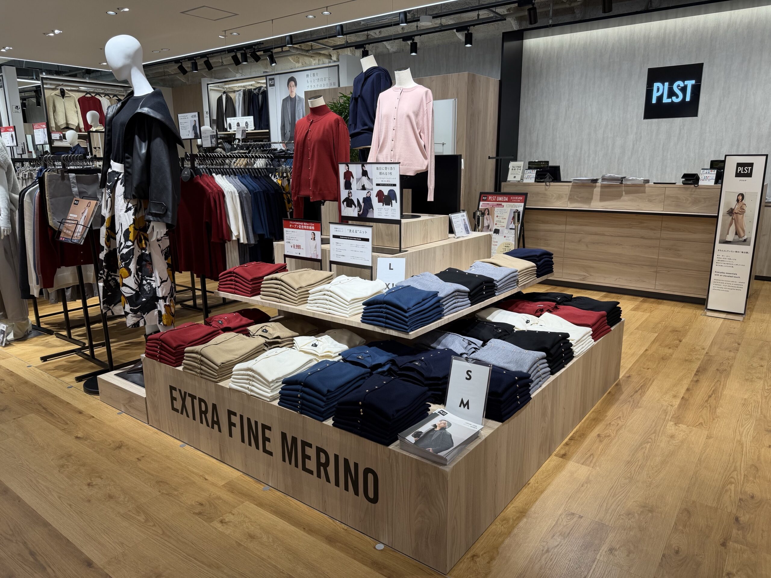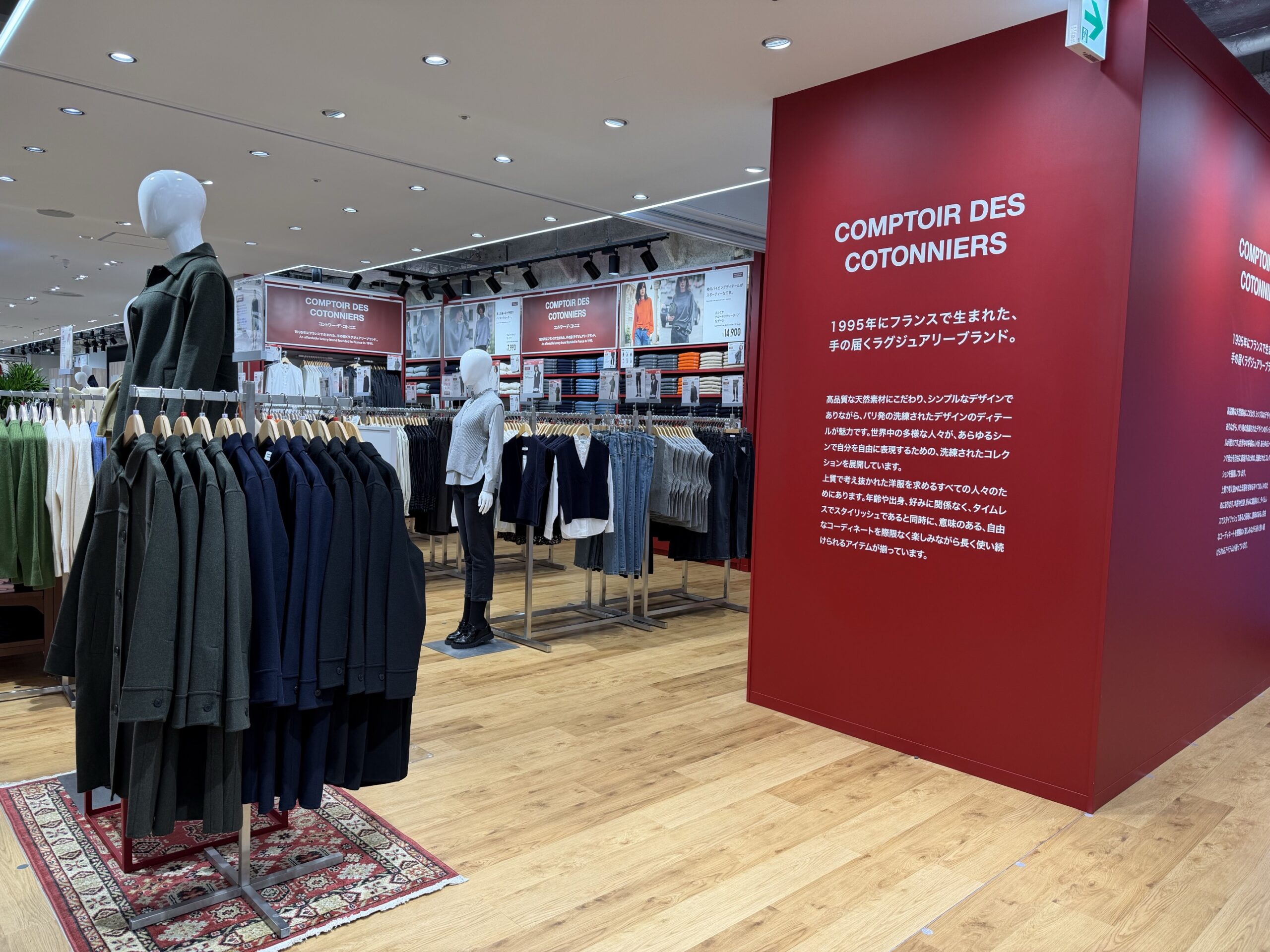 「UNIQLO UMEDA」占地約1,300坪,共兩層樓。1樓以女性商品為主軸,從秋冬必備的「極暖」、「HEATTECH」到「UNIQLO FLOWER」鮮花販售專區,將都市與自然結合成全新購物體驗。館內也設有旗下品牌「PLST」、「Comptoir des Cotonniers」及「Princess Tam Tam」專區,滿足不同風格需求。