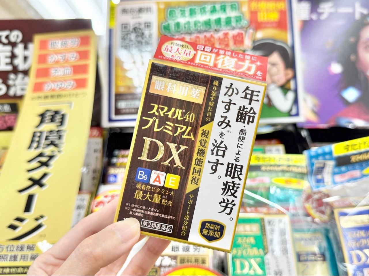 長時間使用手機或電腦的旅人一定要試試「Smile 40 Premium DX 維他命眼藥水」!含維他命A、E、B6等多重營養成分,有效舒緩長時間用眼造成的疲勞、乾澀與視覺模糊。特別針對年齡或藍光造成的眼部不適設計,是日本藥妝店長年熱銷的經典護眼商品。
