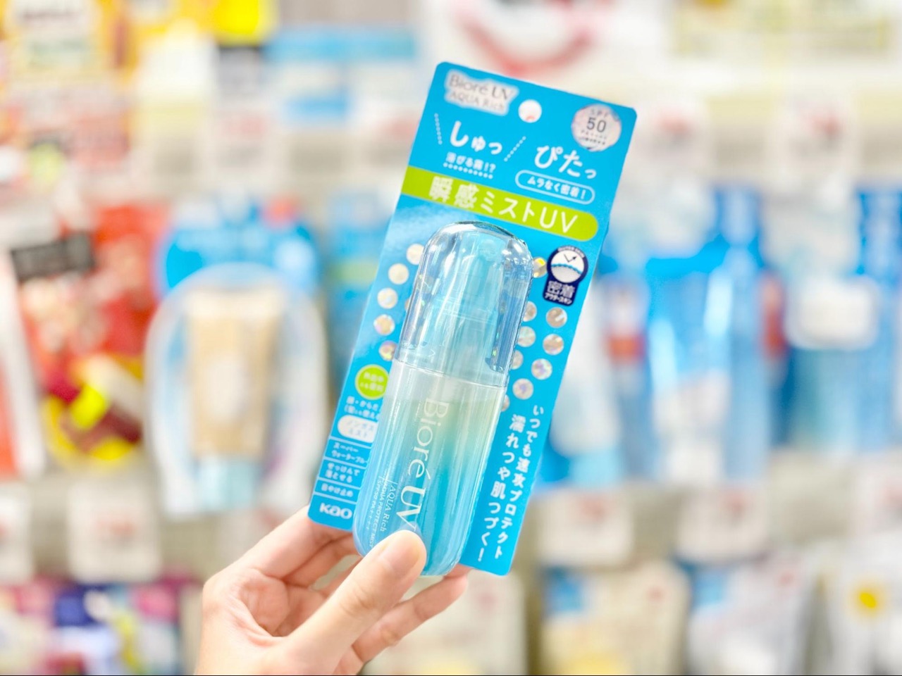 「Biore UV Aqua Rich 高效水感防曬噴霧」採用水感配方與細緻霧化噴頭,能快速覆蓋肌膚形成高效防曬膜(SPF50+ PA++++),妝後也能使用不影響妝感。輕盈清爽、不黏膩,是旅途中補防曬的理想選擇。