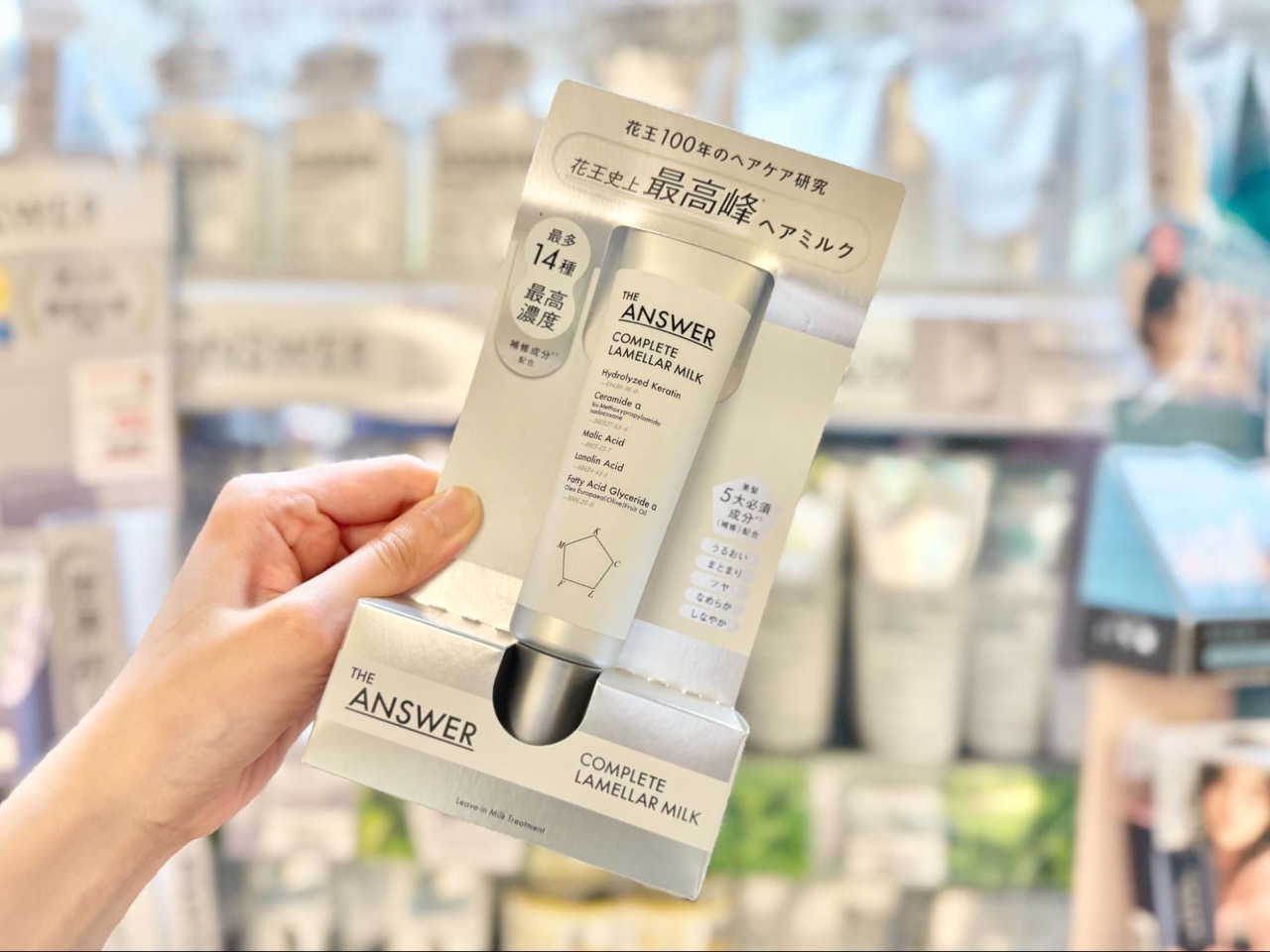「THE ANSWER」是花王旗下品牌之一,這款「THE ANSWER 完美層膜修護乳」,主打髮質層膜修護科技,富含高濃度角蛋白、神經醯胺與 14 種美容成分,能在洗髮後形成柔順保濕的保護膜,修復受損髮絲並提升光澤。屬於免沖洗型護髮乳,使用方便,香氣清新不黏膩。